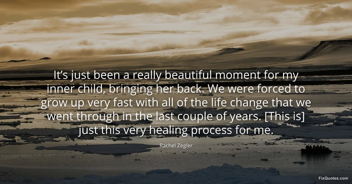 Zegler, Rachel. (2026, March 18). It’s just been a really beautiful moment for my inner child, bringing her back. We were forced to grow up very fast with all of the life change that we went through in the last couple of years. [This is] just this very healing process for me. FixQuotes. https://fixquotes.com/quotes/its-just-been-a-really-beautiful-moment-for-my-186150/