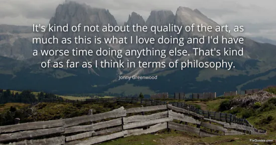 Greenwood, Jonny. "It's kind of not about the quality of the art, as much as this is what I love doing and I'd have a worse time doing anything else. That's kind of as far as I think in terms of philosophy." FixQuotes. January 17, 2026. https://fixquotes.com/quotes/its-kind-of-not-about-the-quality-of-the-art-as-80455/.