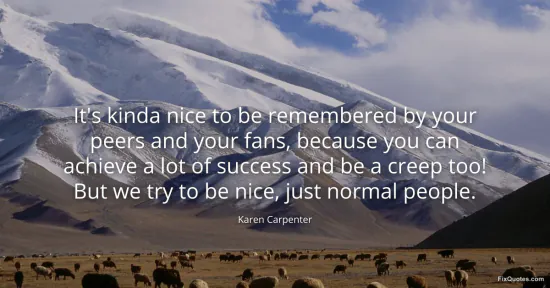 Carpenter, Karen. (2026, January 17). It's kinda nice to be remembered by your peers and your fans, because you can achieve a lot of success and be a creep too! But we try to be nice, just normal people. FixQuotes. https://fixquotes.com/quotes/its-kinda-nice-to-be-remembered-by-your-peers-and-61838/