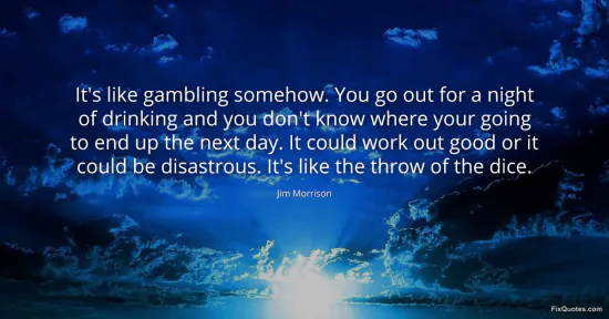Morrison, Jim. (2026, January 17). It's like gambling somehow. You go out for a night of drinking and you don't know where your going to end up the next day. It could work out good or it could be disastrous. It's like the throw of the dice. FixQuotes. https://fixquotes.com/quotes/its-like-gambling-somehow-you-go-out-for-a-night-31978/