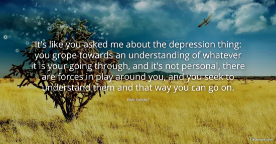 "It's like you asked me about the depression thing: you grope towards an understanding of whatever it is your going through, and it's not personal, there are forces in play around you, and you seek to understand them and that way you can go on"
