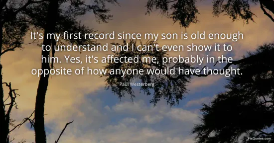 Westerberg, Paul. "It's my first record since my son is old enough to understand and I can't even show it to him. Yes, it's affected me, probably in the opposite of how anyone would have thought." FixQuotes. January 15, 2026. https://fixquotes.com/quotes/its-my-first-record-since-my-son-is-old-enough-to-163665/.