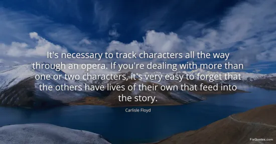 Floyd, Carlisle. "It's necessary to track characters all the way through an opera. If you're dealing with more than one or two characters, it's very easy to forget that the others have lives of their own that feed into the story." FixQuotes. January 17, 2026. https://fixquotes.com/quotes/its-necessary-to-track-characters-all-the-way-49612/.