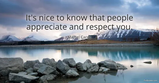 Carne, Marcel. (2026, January 16). It's nice to know that people appreciate and respect you. FixQuotes. https://fixquotes.com/quotes/its-nice-to-know-that-people-appreciate-and-96797/