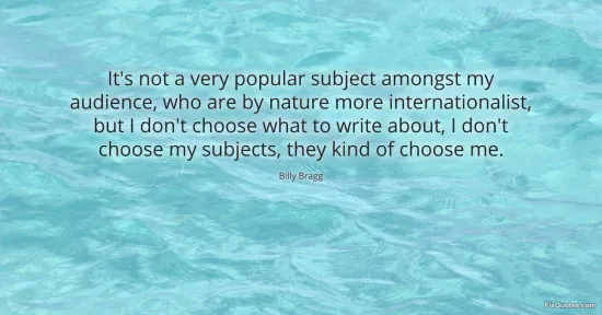 Bragg, Billy. "It's not a very popular subject amongst my audience, who are by nature more internationalist, but I don't choose what to write about, I don't choose my subjects, they kind of choose me." FixQuotes. January 17, 2026. https://fixquotes.com/quotes/its-not-a-very-popular-subject-amongst-my-39074/.