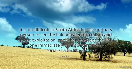 Slovo, Joe. (2026, January 15). It's not difficult in South Africa for the ordinary person to see the link between capitalism and racist exploitation, and when one sees the link one immediately thinks in terms of a socialist alternative. FixQuotes. https://fixquotes.com/quotes/its-not-difficult-in-south-africa-for-the-146025/