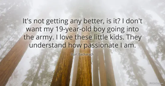 Bacharach, Burt. (2026, January 17). It's not getting any better, is it? I don't want my 19-year-old boy going into the army. I love these little kids. They understand how passionate I am. FixQuotes. https://fixquotes.com/quotes/its-not-getting-any-better-is-it-i-dont-want-my-51763/