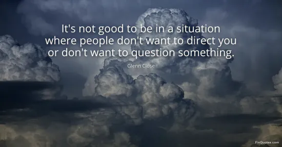 Close, Glenn. (2026, January 16). It's not good to be in a situation where people don't want to direct you or don't want to question something. FixQuotes. https://fixquotes.com/quotes/its-not-good-to-be-in-a-situation-where-people-105302/