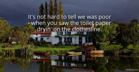 Lindsey, George. (2026, January 16). It's not hard to tell we was poor - when you saw the toilet paper dryin' on the clothesline. FixQuotes. https://fixquotes.com/quotes/its-not-hard-to-tell-we-was-poor-when-you-saw-123310/