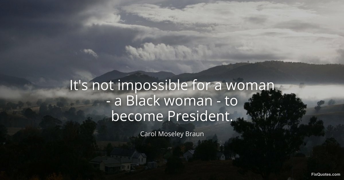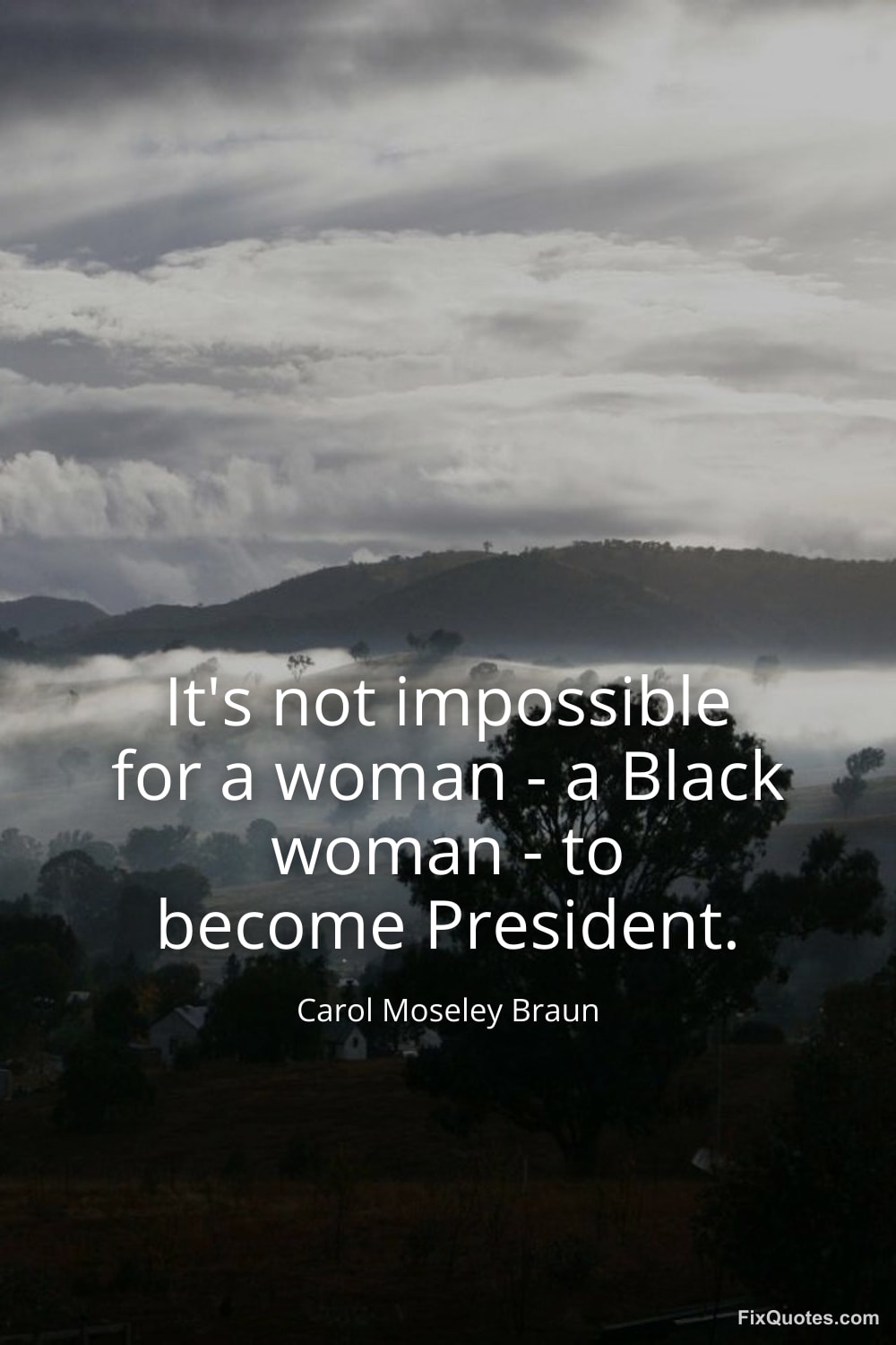 Braun, Carol Moseley. (2026, January 17). It's not impossible for a woman - a Black woman - to become President. FixQuotes. https://fixquotes.com/quotes/its-not-impossible-for-a-woman-a-black-woman-39332/