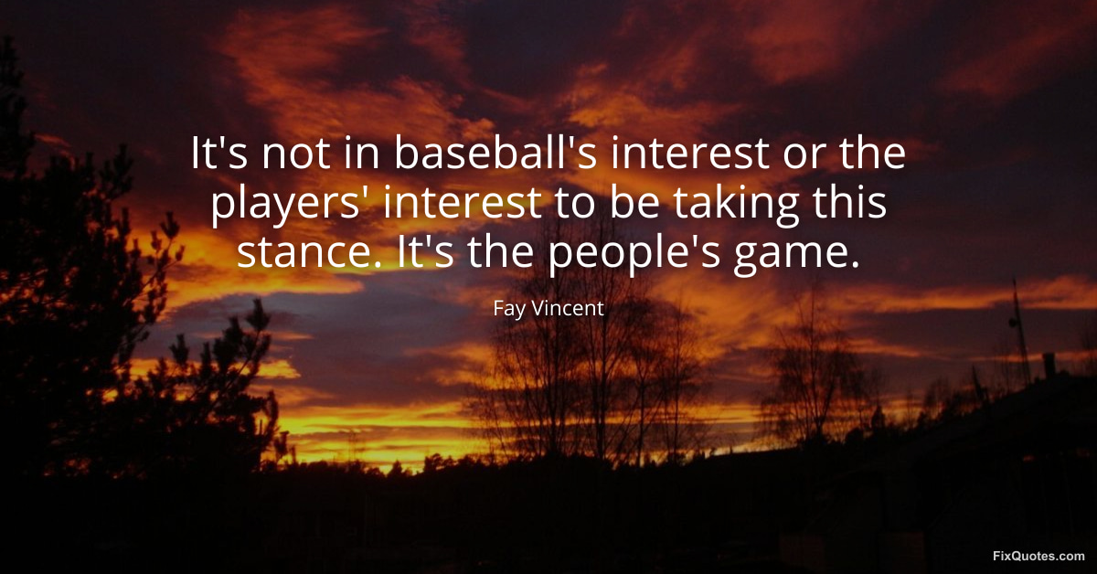 Vincent, Fay. (2026, January 16). It's not in baseball's interest or the players' interest to be taking this stance. It's the people's game. FixQuotes. https://fixquotes.com/quotes/its-not-in-baseballs-interest-or-the-players-89851/