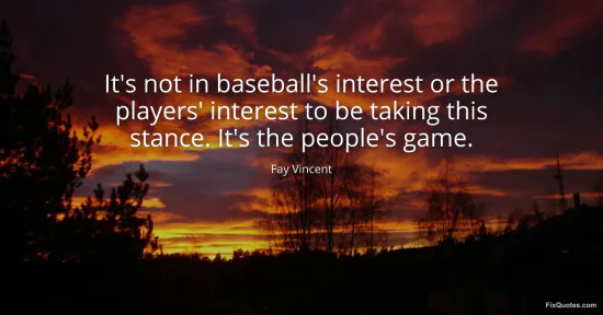 Vincent, Fay. "It's not in baseball's interest or the players' interest to be taking this stance. It's the people's game." FixQuotes. January 16, 2026. https://fixquotes.com/quotes/its-not-in-baseballs-interest-or-the-players-89851/.