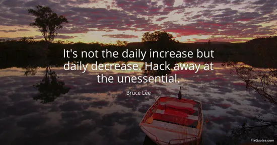 | Source | Bruce Lee , commonly attributed line appearing in compilations of his notes (commonly cited from 'Tao of Jeet Kune Do'): "It's not the daily increase but daily decrease. Hack away at the unessential." |