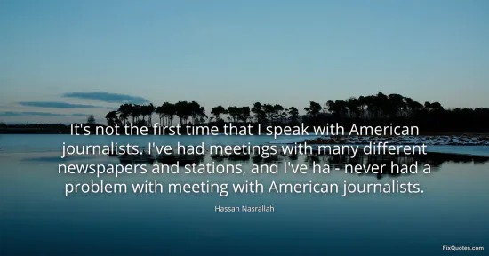 Nasrallah, Hassan. (2026, January 18). It's not the first time that I speak with American journalists. I've had meetings with many different newspapers and stations, and I've ha - never had a problem with meeting with American journalists. FixQuotes. https://fixquotes.com/quotes/its-not-the-first-time-that-i-speak-with-american-18906/