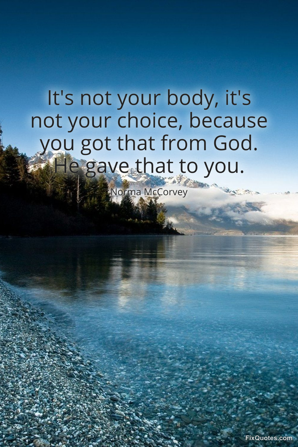 McCorvey, Norma. (2026, January 16). It's not your body, it's not your choice, because you got that from God. He gave that to you. FixQuotes. https://fixquotes.com/quotes/its-not-your-body-its-not-your-choice-because-you-84437/