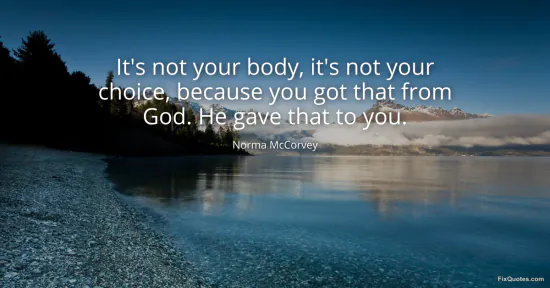 McCorvey, Norma. "It's not your body, it's not your choice, because you got that from God. He gave that to you." FixQuotes. January 16, 2026. https://fixquotes.com/quotes/its-not-your-body-its-not-your-choice-because-you-84437/.