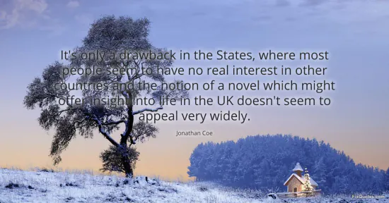 Coe, Jonathan. (2026, January 17). It's only a drawback in the States, where most people seem to have no real interest in other countries and the notion of a novel which might offer insight into life in the UK doesn't seem to appeal very widely. FixQuotes. https://fixquotes.com/quotes/its-only-a-drawback-in-the-states-where-most-79917/
