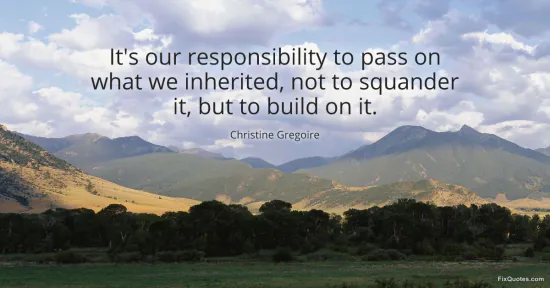 Gregoire, Christine. "It's our responsibility to pass on what we inherited, not to squander it, but to build on it." FixQuotes. January 17, 2026. https://fixquotes.com/quotes/its-our-responsibility-to-pass-on-what-we-39464/.