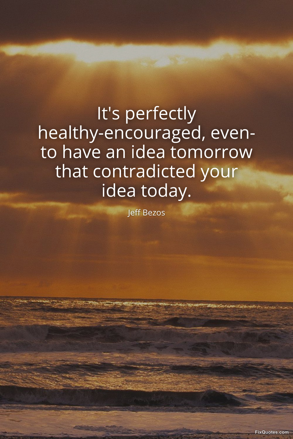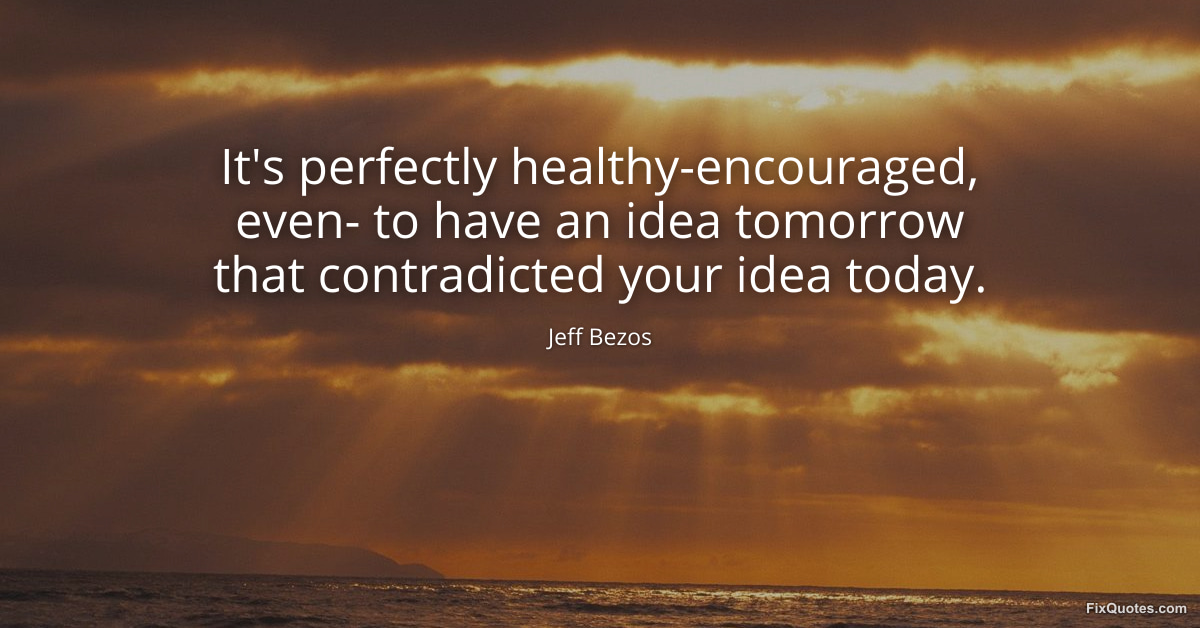 Bezos, Jeff. (2026, March 25). It's perfectly healthy-encouraged, even- to have an idea tomorrow that contradicted your idea today. FixQuotes. https://fixquotes.com/quotes/its-perfectly-healthy-encouraged-even-to-have-an-186448/