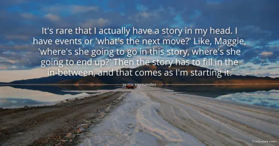 Hernandez, Jaime. (2026, January 16). It's rare that I actually have a story in my head. I have events or 'what's the next move?' Like, Maggie, 'where's she going to go in this story, where's she going to end up?' Then the story has to fill in the in-between, and that comes as I'm starting it. FixQuotes. https://fixquotes.com/quotes/its-rare-that-i-actually-have-a-story-in-my-head-89315/