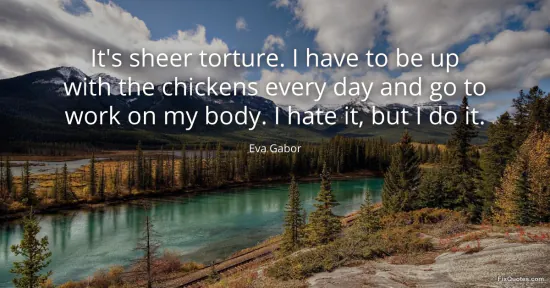 Gabor, Eva. (2026, January 17). It's sheer torture. I have to be up with the chickens every day and go to work on my body. I hate it, but I do it. FixQuotes. https://fixquotes.com/quotes/its-sheer-torture-i-have-to-be-up-with-the-67322/