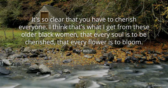 Walker, Alice. (2026, February 16). It's so clear that you have to cherish everyone. I think that's what I get from these older black women, that every soul is to be cherished, that every flower is to bloom. FixQuotes. https://fixquotes.com/quotes/its-so-clear-that-you-have-to-cherish-everyone-i-104034/