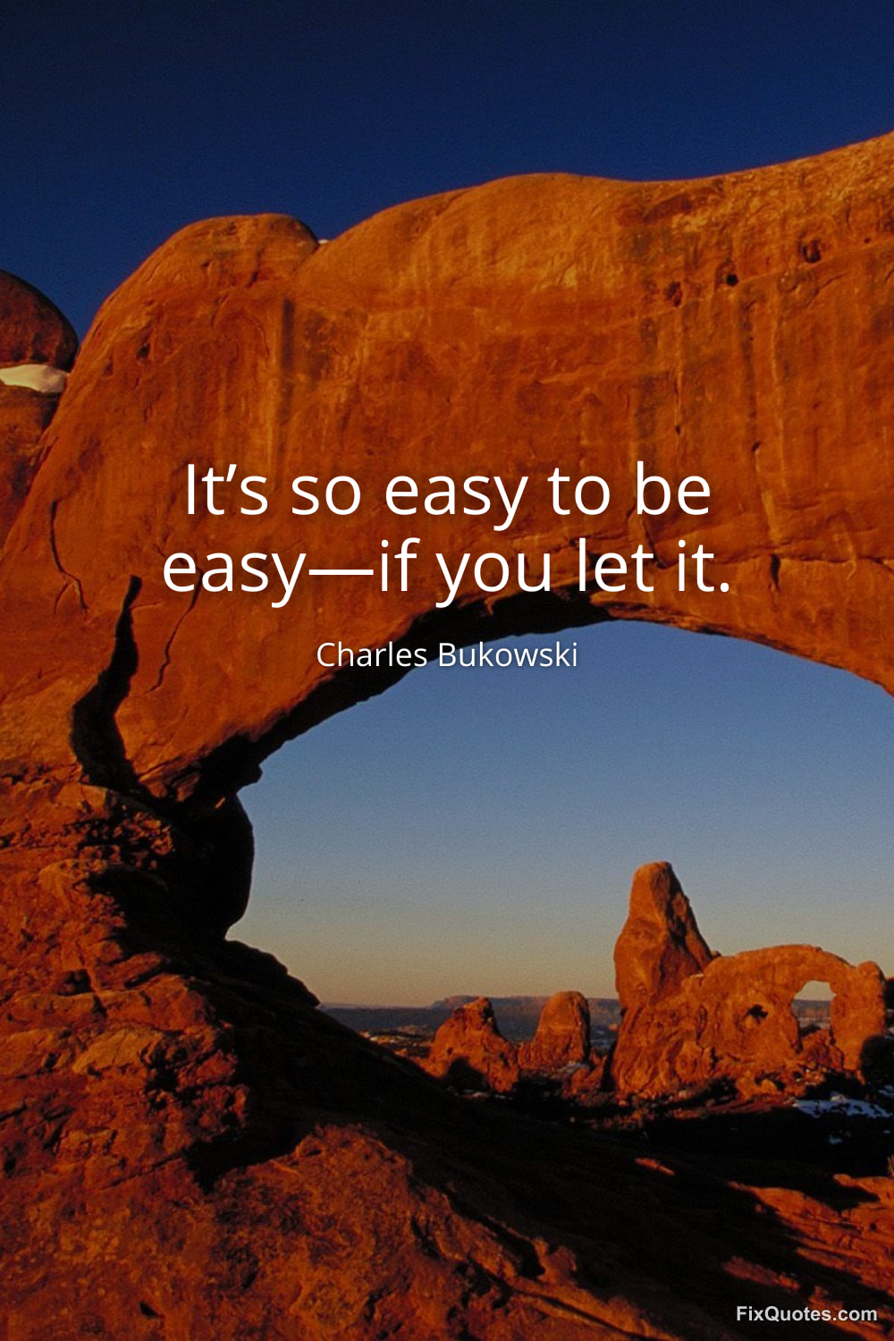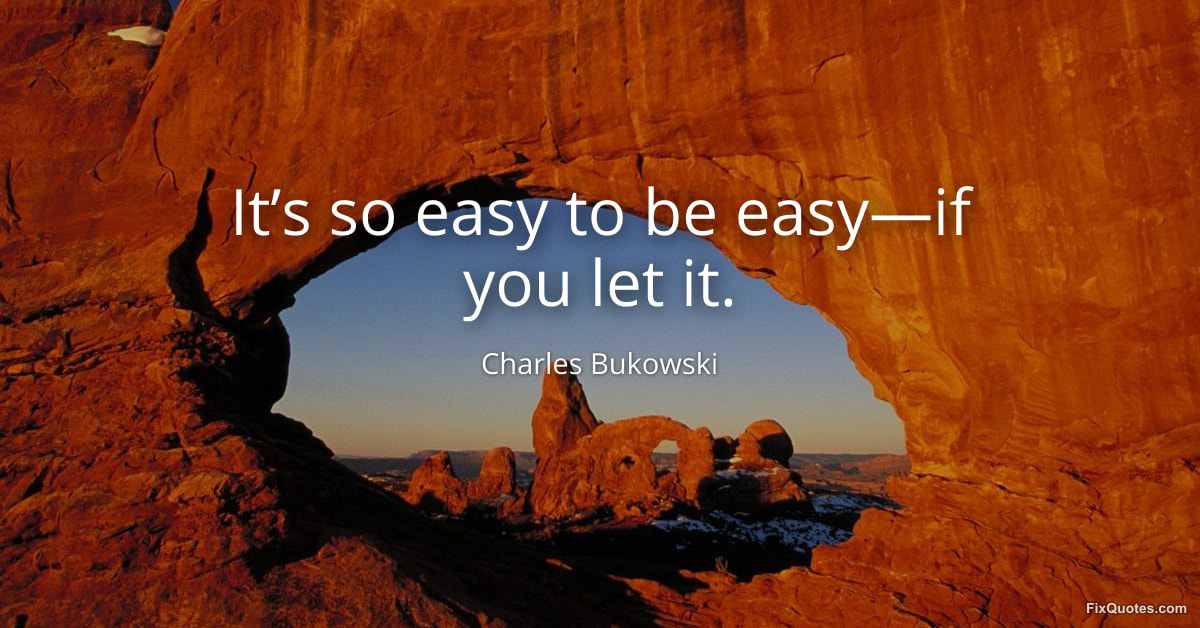 Bukowski, Charles. "It’s so easy to be easy—if you let it." FixQuotes. February 10, 2026. https://fixquotes.com/quotes/its-so-easy-to-be-easy-if-you-let-it-185224/.