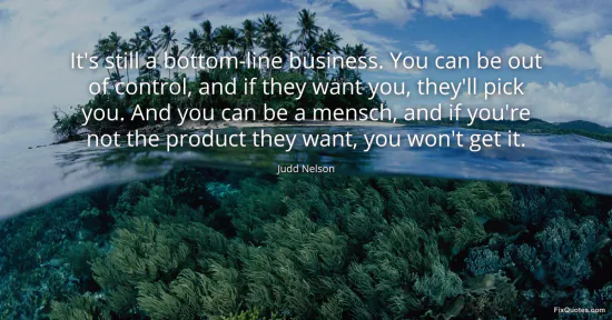 Nelson, Judd. (2026, January 15). It's still a bottom-line business. You can be out of control, and if they want you, they'll pick you. And you can be a mensch, and if you're not the product they want, you won't get it. FixQuotes. https://fixquotes.com/quotes/its-still-a-bottom-line-business-you-can-be-out-165283/