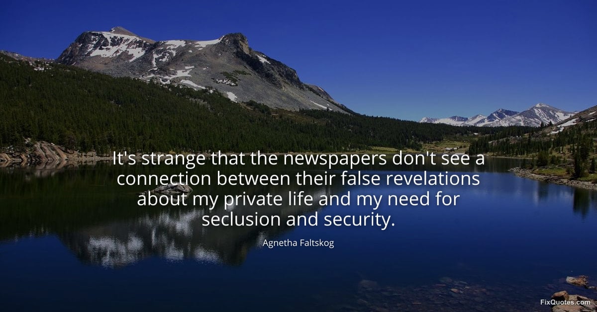 Faltskog, Agnetha. "It's strange that the newspapers don't see a connection between their false revelations about my private life and my need for seclusion and security." FixQuotes. January 16, 2026. https://fixquotes.com/quotes/its-strange-that-the-newspapers-dont-see-a-111009/.