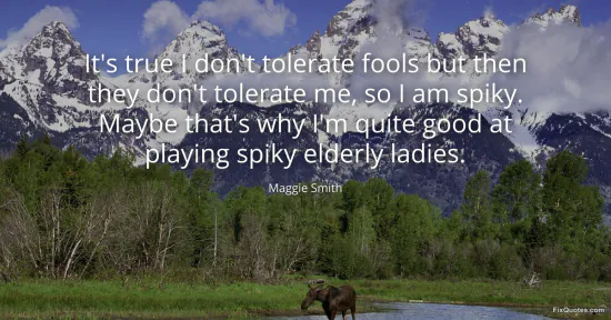 Smith, Maggie. "It's true I don't tolerate fools but then they don't tolerate me, so I am spiky. Maybe that's why I'm quite good at playing spiky elderly ladies." FixQuotes. January 17, 2026. https://fixquotes.com/quotes/its-true-i-dont-tolerate-fools-but-then-they-dont-81233/.