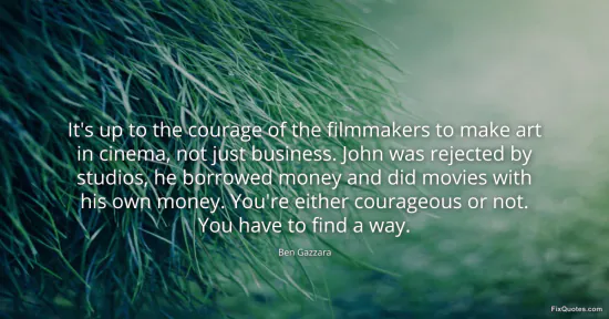 Gazzara, Ben. "It's up to the courage of the filmmakers to make art in cinema, not just business. John was rejected by studios, he borrowed money and did movies with his own money. You're either courageous or not. You have to find a way." FixQuotes. January 17, 2026. https://fixquotes.com/quotes/its-up-to-the-courage-of-the-filmmakers-to-make-44644/.