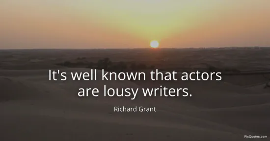 Grant, Richard. (2026, January 16). It's well known that actors are lousy writers. FixQuotes. https://fixquotes.com/quotes/its-well-known-that-actors-are-lousy-writers-125032/