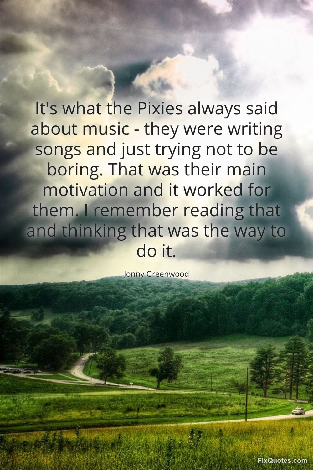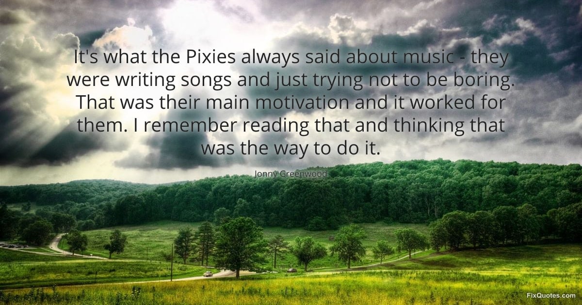 Greenwood, Jonny. (2026, January 15). It's what the Pixies always said about music - they were writing songs and just trying not to be boring. That was their main motivation and it worked for them. I remember reading that and thinking that was the way to do it. FixQuotes. https://fixquotes.com/quotes/its-what-the-pixies-always-said-about-music-149811/
