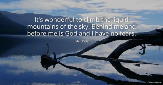 Keller, Helen. (2026, January 18). It's wonderful to climb the liquid mountains of the sky. Behind me and before me is God and I have no fears. FixQuotes. https://fixquotes.com/quotes/its-wonderful-to-climb-the-liquid-mountains-of-14105/