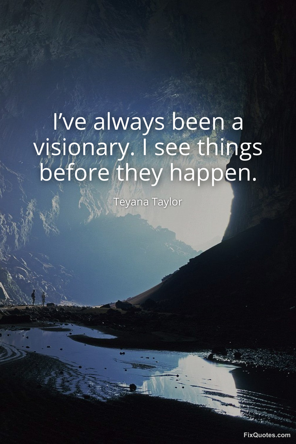Taylor, Teyana. (2026, January 26). I’ve always been a visionary. I see things before they happen. FixQuotes. https://fixquotes.com/quotes/ive-always-been-a-visionary-i-see-things-before-184600/