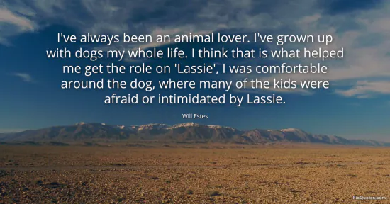 Estes, Will. (2026, January 16). I've always been an animal lover. I've grown up with dogs my whole life. I think that is what helped me get the role on 'Lassie', I was comfortable around the dog, where many of the kids were afraid or intimidated by Lassie. FixQuotes. https://fixquotes.com/quotes/ive-always-been-an-animal-lover-ive-grown-up-with-103339/