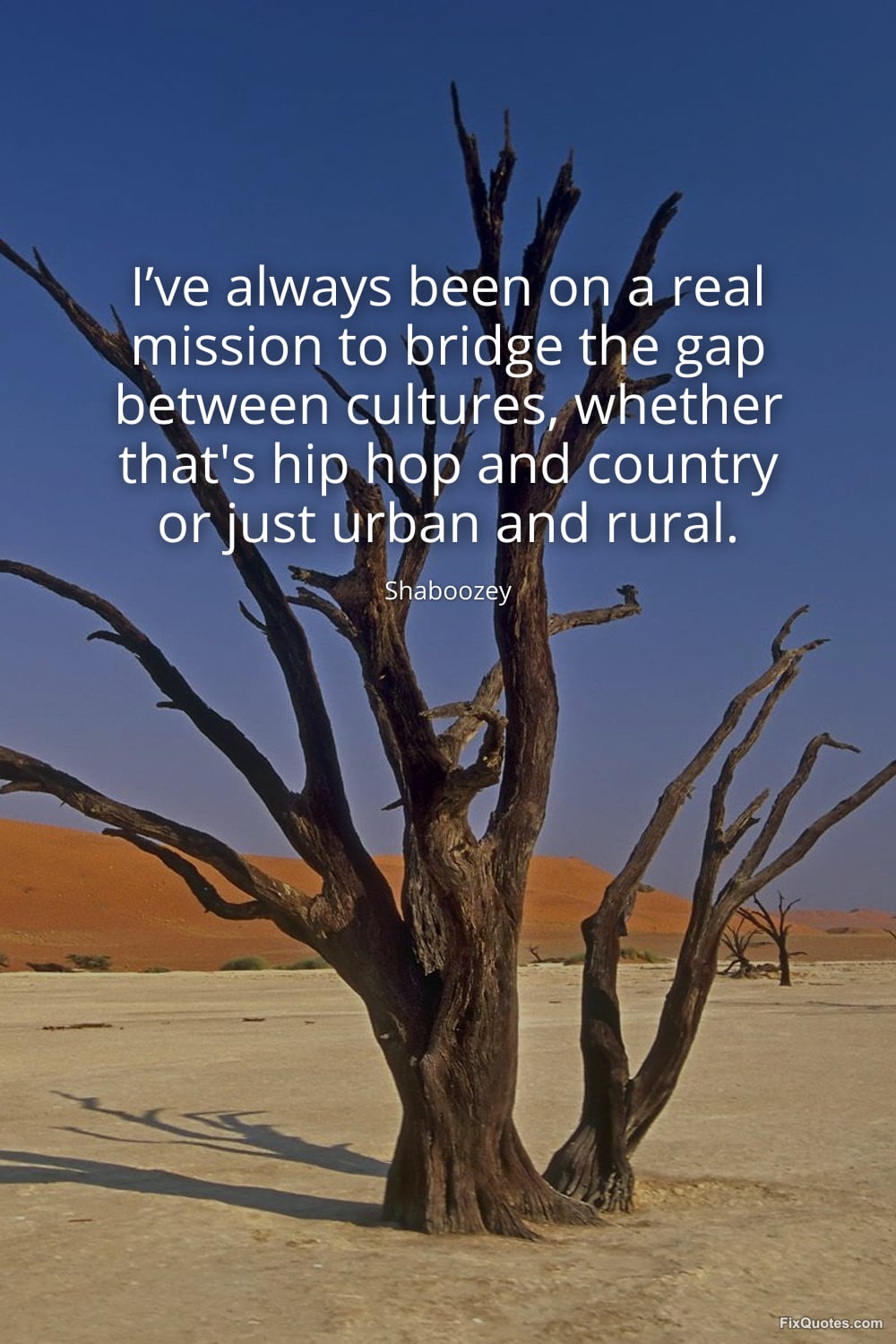 Shaboozey. "I’ve always been on a real mission to bridge the gap between cultures, whether that's hip hop and country or just urban and rural." FixQuotes. March 20, 2026. https://fixquotes.com/quotes/ive-always-been-on-a-real-mission-to-bridge-the-186179/.