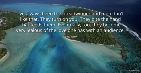 Bassey, Shirley. "I've always been the breadwinner and men don't like that. They turn on you. They bite the hand that feeds them. Eventually, too, they become very jealous of the love one has with an audience." FixQuotes. January 16, 2026. https://fixquotes.com/quotes/ive-always-been-the-breadwinner-and-men-dont-like-113174/.