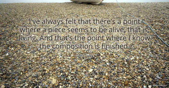 "I've always felt that there's a point where a piece seems to be alive, that is, living. And that's the point where I know the composition is finished." FixQuotes, 15 Jan. 2026, https://fixquotes.com/quotes/ive-always-felt-that-theres-a-point-where-a-piece-170075/. Accessed 24 Feb. 2026.