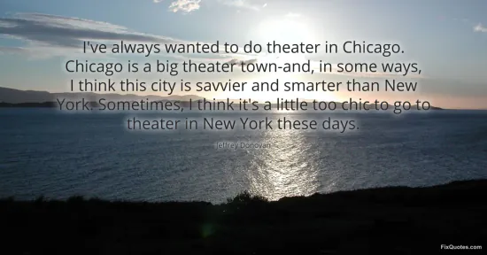 Donovan, Jeffrey. (2026, January 17). I've always wanted to do theater in Chicago. Chicago is a big theater town-and, in some ways, I think this city is savvier and smarter than New York. Sometimes, I think it's a little too chic to go to theater in New York these days. FixQuotes. https://fixquotes.com/quotes/ive-always-wanted-to-do-theater-in-chicago-63593/