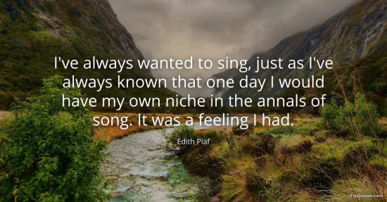 "I've always wanted to sing, just as I've always known that one day I would have my own niche in the annals of song. It was a feeling I had"