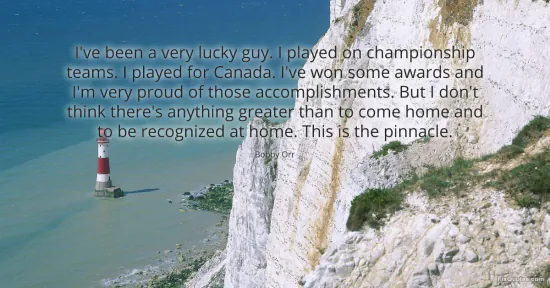 Orr, Bobby. "I've been a very lucky guy. I played on championship teams. I played for Canada. I've won some awards and I'm very proud of those accomplishments. But I don't think there's anything greater than to come home and to be recognized at home. This is the pinnacle." FixQuotes. January 18, 2026. https://fixquotes.com/quotes/ive-been-a-very-lucky-guy-i-played-on-10806/.