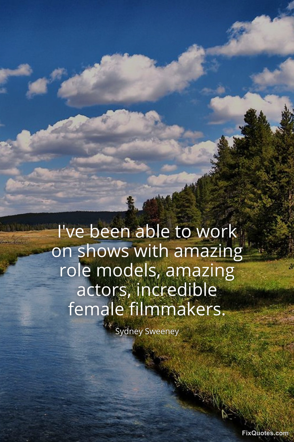 Sweeney, Sydney. (2026, January 11). I've been able to work on shows with amazing role models, amazing actors, incredible female filmmakers. FixQuotes. https://fixquotes.com/quotes/ive-been-able-to-work-on-shows-with-amazing-role-183790/
