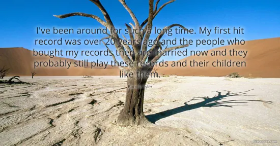 Tyler, Bonnie. "I've been around for such a long time. My first hit record was over 20 years ago and the people who bought my records then are married now and they probably still play these records and their children like them." FixQuotes. January 17, 2026. https://fixquotes.com/quotes/ive-been-around-for-such-a-long-time-my-first-hit-49336/.