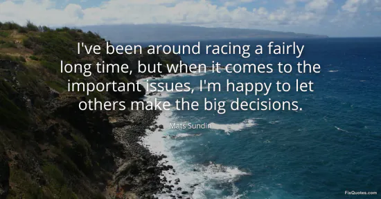 Sundin, Mats. (2026, January 15). I've been around racing a fairly long time, but when it comes to the important issues, I'm happy to let others make the big decisions. FixQuotes. https://fixquotes.com/quotes/ive-been-around-racing-a-fairly-long-time-but-170479/