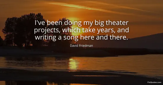 Friedman, David. (2026, January 17). I've been doing my big theater projects, which take years, and writing a song here and there. FixQuotes. https://fixquotes.com/quotes/ive-been-doing-my-big-theater-projects-which-take-38259/