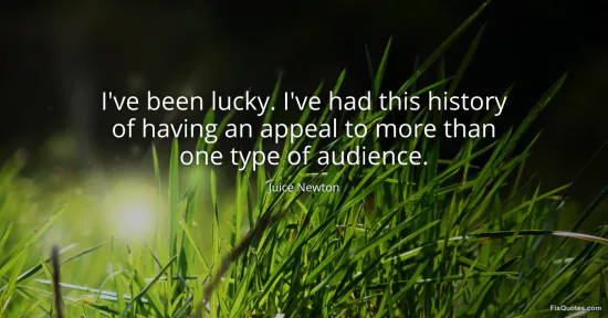 Newton, Juice. "I've been lucky. I've had this history of having an appeal to more than one type of audience." FixQuotes. January 17, 2026. https://fixquotes.com/quotes/ive-been-lucky-ive-had-this-history-of-having-an-75253/.