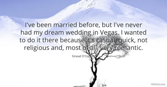 O'Connor, Sinead. "I've been married before, but I've never had my dream wedding in Vegas. I wanted to do it there because it's casual, quick, not religious and, most of all, very romantic." FixQuotes. January 16, 2026. https://fixquotes.com/quotes/ive-been-married-before-but-ive-never-had-my-95102/.