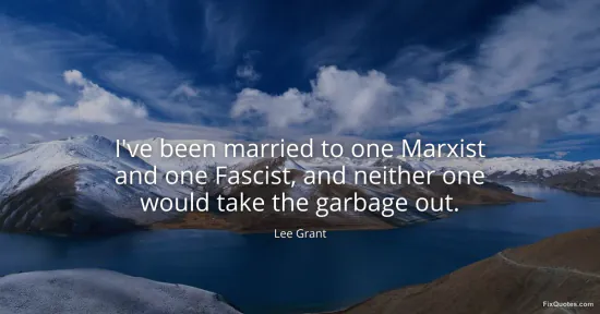 Grant, Lee. (2026, February 8). I've been married to one Marxist and one Fascist, and neither one would take the garbage out. FixQuotes. https://fixquotes.com/quotes/ive-been-married-to-one-marxist-and-one-fascist-167964/