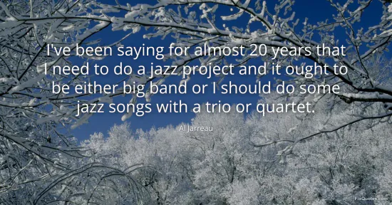 Jarreau, Al. (2026, January 16). I've been saying for almost 20 years that I need to do a jazz project and it ought to be either big band or I should do some jazz songs with a trio or quartet. FixQuotes. https://fixquotes.com/quotes/ive-been-saying-for-almost-20-years-that-i-need-121262/